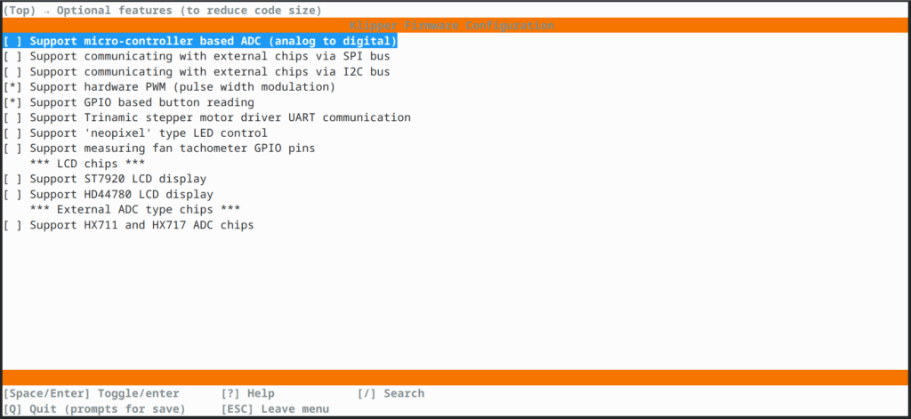 あまりオプションを足しすぎるとファームウェアのサイズが大きくなりすぎたり,後述のMoonraker 同様ライブラリの依存関係でつまずくかもしれない.