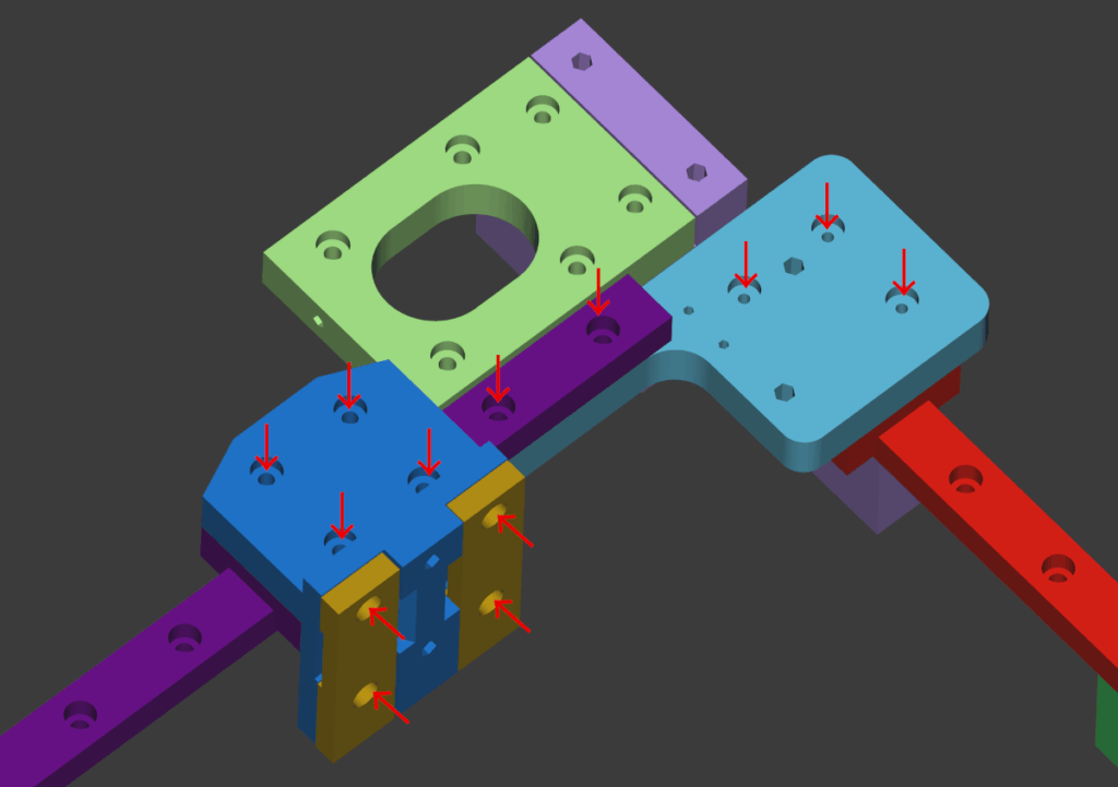 X軸のリニアレールは下からナット留めしたほうがいい(セルフタッピングでもある程度問題無いかもしれないが念の為).