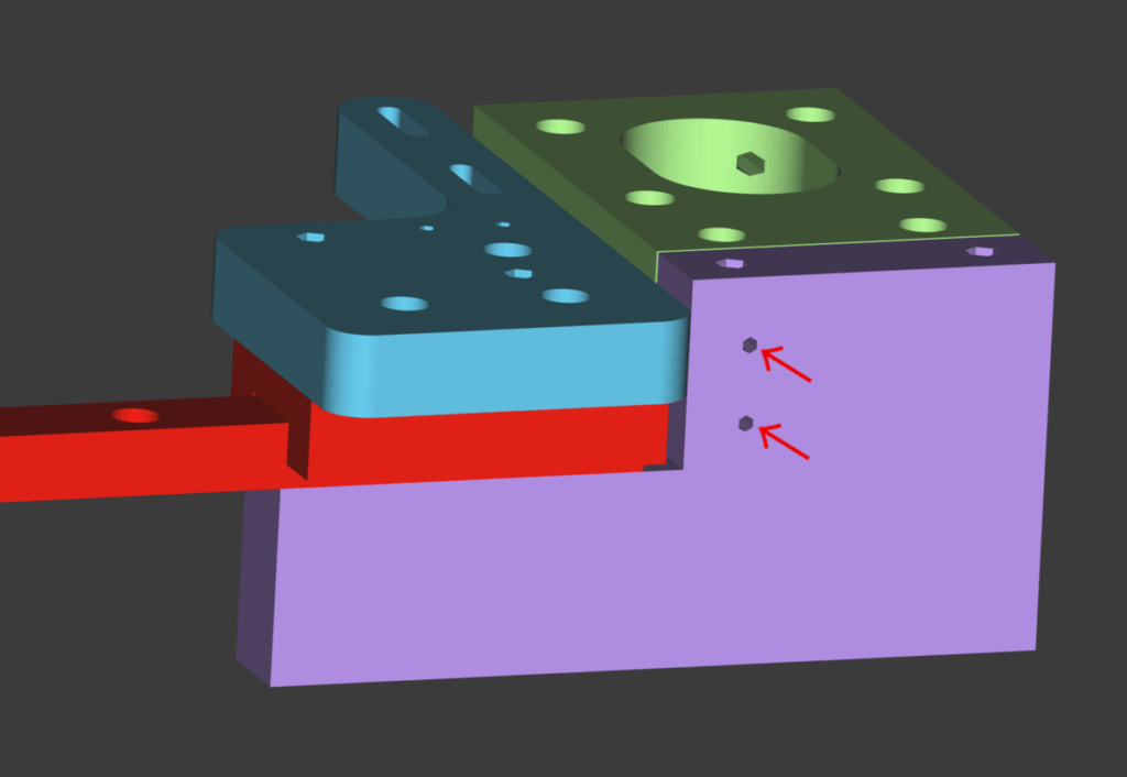 ヘッドにネジ止めする2枚の黄色い板はベルトを固定するための部品になっている.比較的頻繁に着脱する部分なので,青いヘッド部品にローレットナットを挿入しておくことをおすすめする.